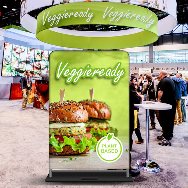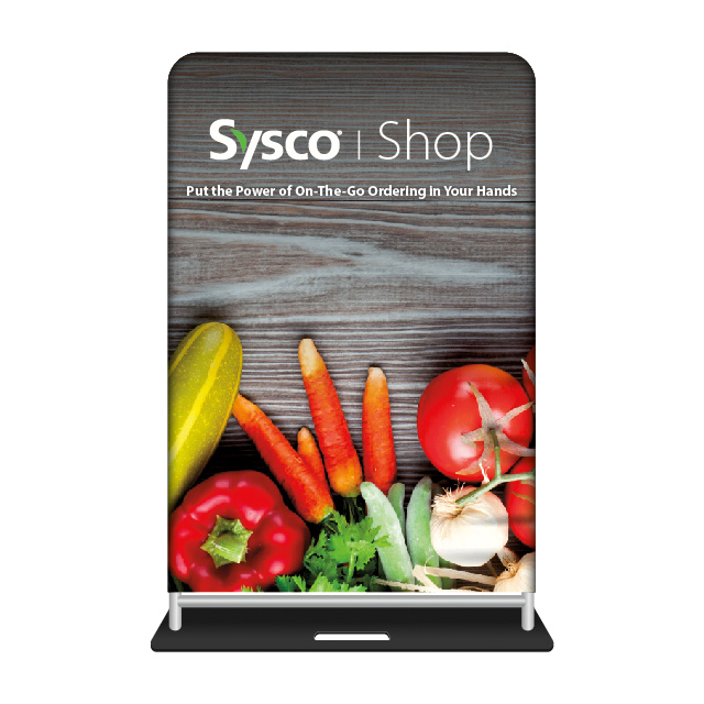 A durable and portable solution that utilizes a display cloth slipcover for a self-standing, wrinkle free banner display. The price includes a frame, custom printed display cloth, and carry bag.
