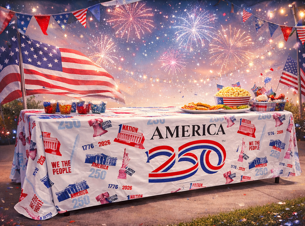 Whether used on its own or paired with America250™ banners, backdrops, and signage, the America250™ Table Cover helps unify your space and reinforce your participation in this historic national celebration.