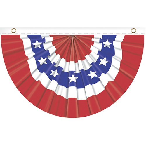 An economical alternative to traditional pleated fan bunting. This unique design projects a rich 3-D pleated appearance. The Mirage Fan Bunting is hemmed and includes a flag style header with grommets.